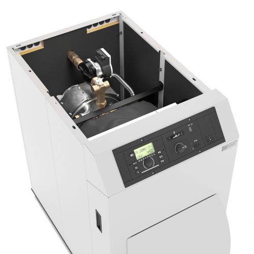 - Leises Betriebsgeräusch durch ein stabiles vollgekapseltes Kesselgehäuse